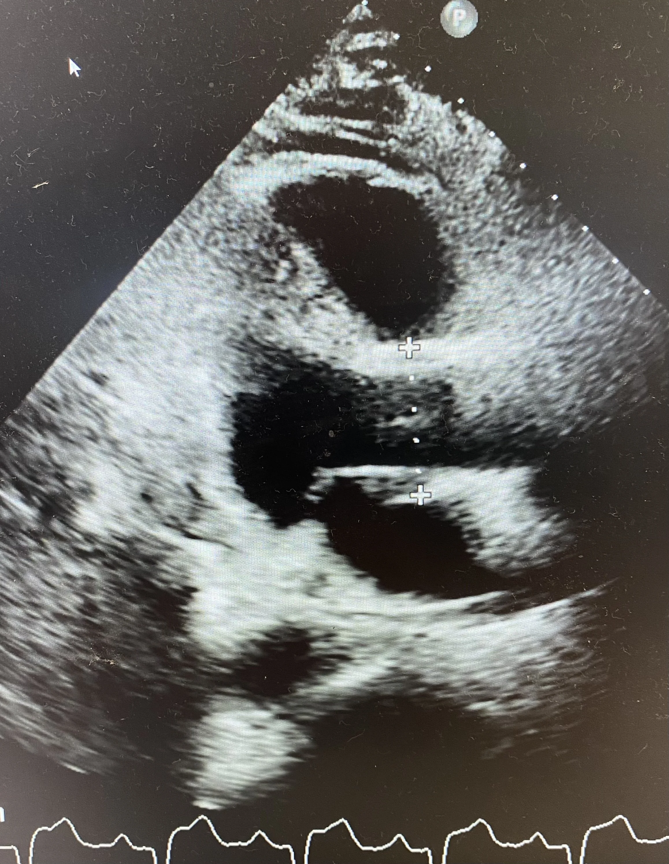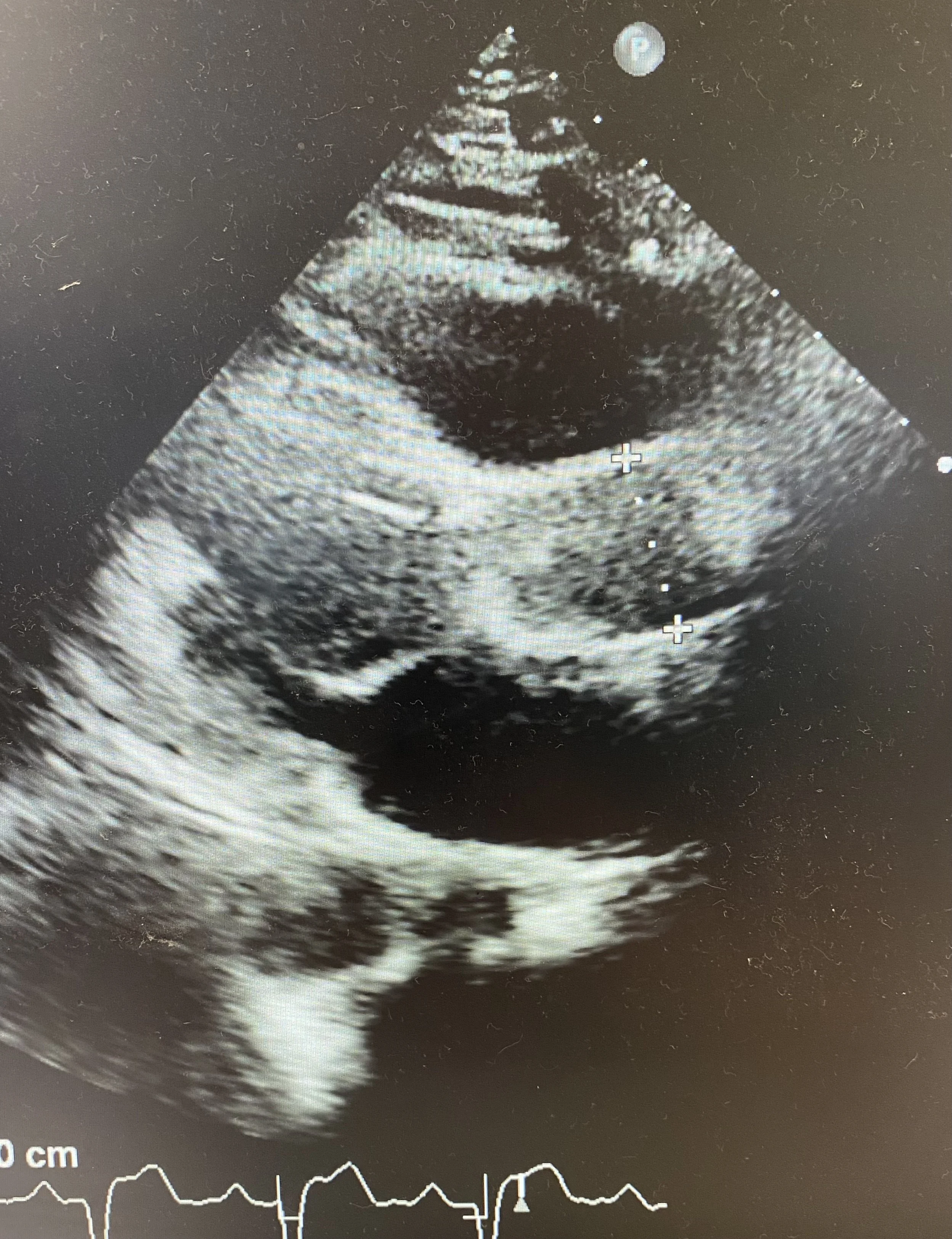 POCUS (shown below) showed a normal size aortic root and ascending aorta. There was no pericardial effusion.